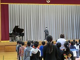 11月4日(火)に、高齢者ふれあい学習を本校音楽室で行いました。本事業のねらいは、子どもたちと高齢者がともに作品づくりに取り組むことを通して、多世代間の関わりの大切さを伝え、豊かな人間関係づくりや社会性の育成を図り、さらに、互いの存在を身近に感じることで、地域全体で子どもたちを育てるあたたかな繋がり築いていくことを目指すことでした。子どもたちは地域の高齢者との会話や交流、互いに学び合う活動を通して、地域のあたたかさを改めて感じることのできる時間となりました。