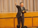 11月4日(火)に、全校朝会を行いました。校長先生から10月の行事の振りかえり、敷地内の植物の紹介、11月の目標、校内マラソンでのお願い、体調管理について話がありました。