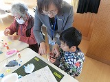 ・子どもと高齢者が一緒につまみ細工の「ゆりかご」を製作