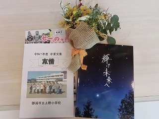9名の卒業生の今後のご活躍を期待して、上野小学校一同で心から応援しています。【卒業式の様子】