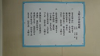 4月20日(月)、毎朝の短学活では、各学級で課題曲を元気よく歌っています。今週の課題曲は「校歌」です。上野小学校の校歌は、勝浦にゆかりがあり、かつて音楽教師を務められた川名勲先生が作曲したもので、豊かな自然の恵みが広がるような、さわやかな曲調が特徴です。子どもたちも大好きな一曲です。