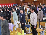 9名の卒業生の今後のご活躍を期待し、上野小学校一同で応援しています。 保護者の皆さま、お子様のご卒業おめでとうございます。平素より本校の教育活動にご理解とご協力を賜り、心より感謝申し上げます。お子様の今後の活躍を期待しています。【卒業証書授与式の様子】