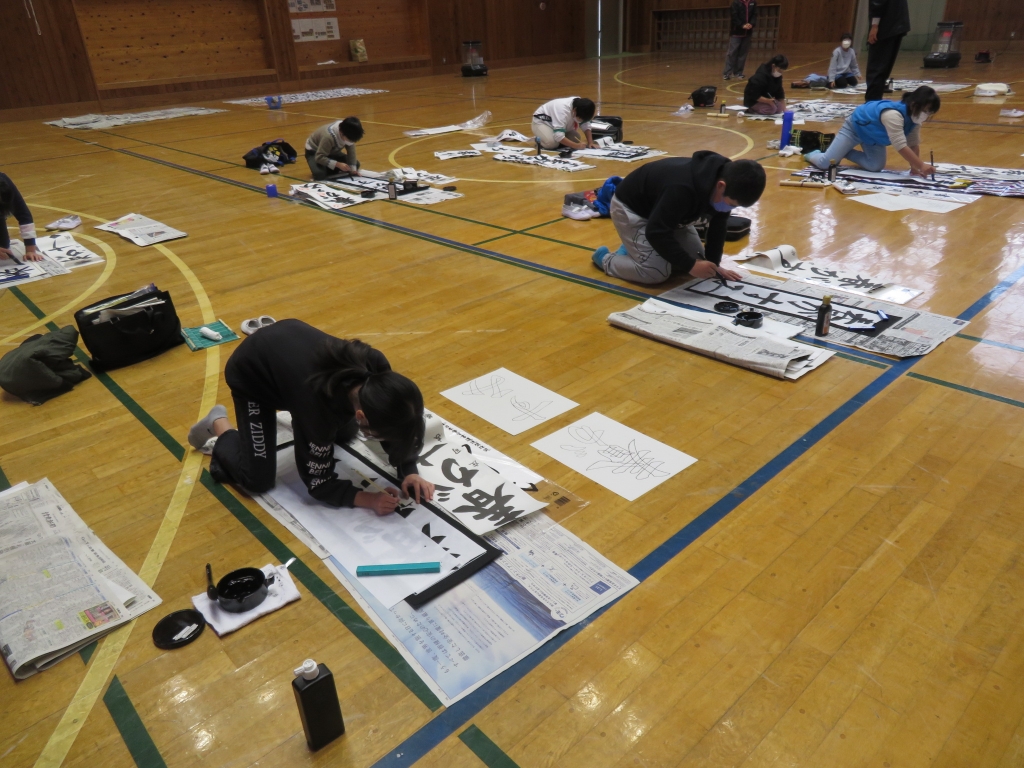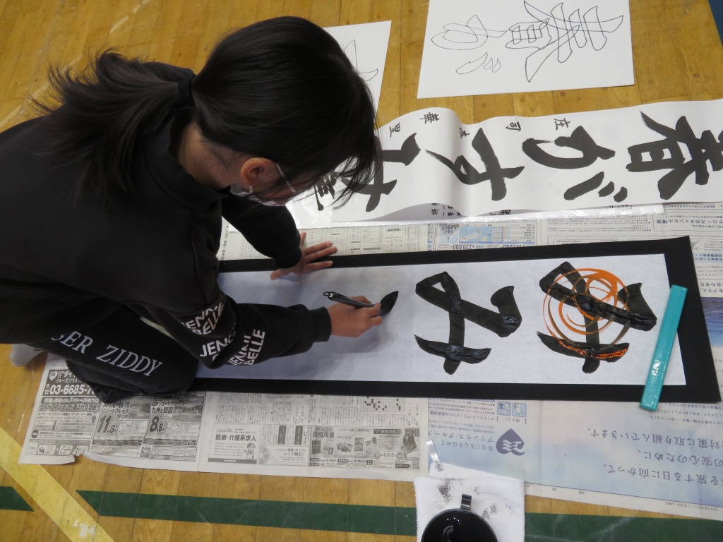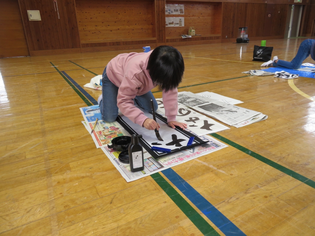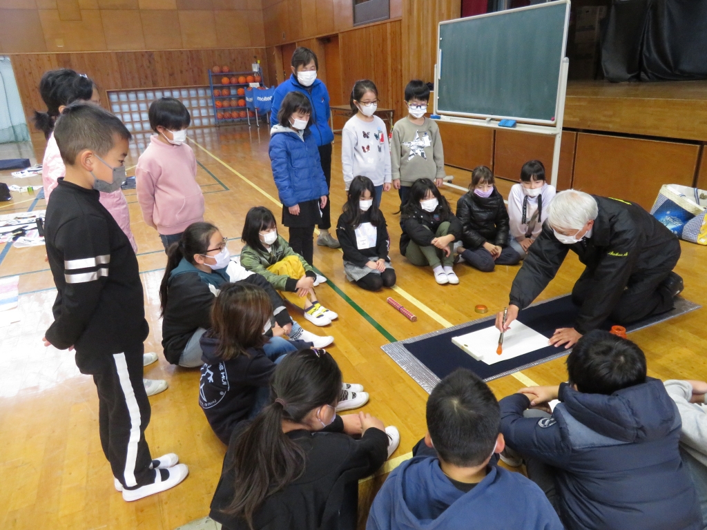 12月14日、鈴木先生を講師にお迎えし、3.4年生が書初めの練習を行いました。
