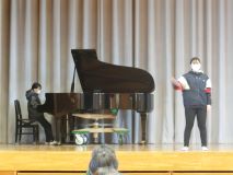 これまで、6年生が担当していた校歌斉唱のピアノと指揮は、今月から5年生が担当します。