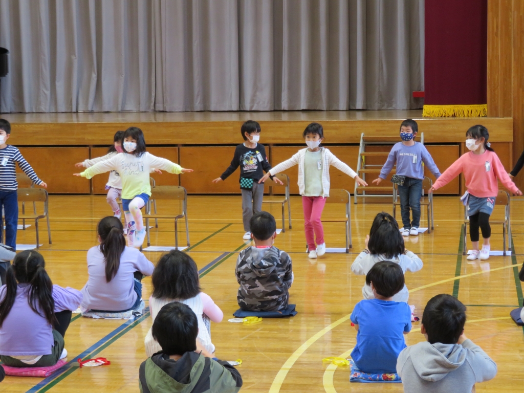 1年生が、かわいらしい「さんぽ」の歌とダンスを披露。