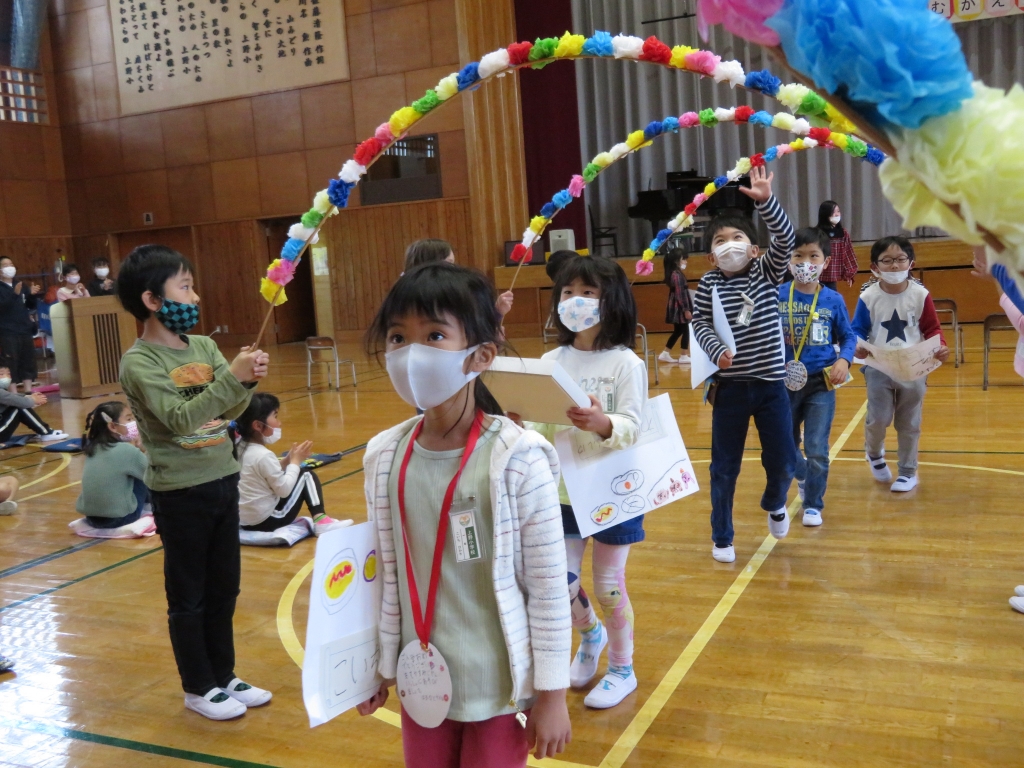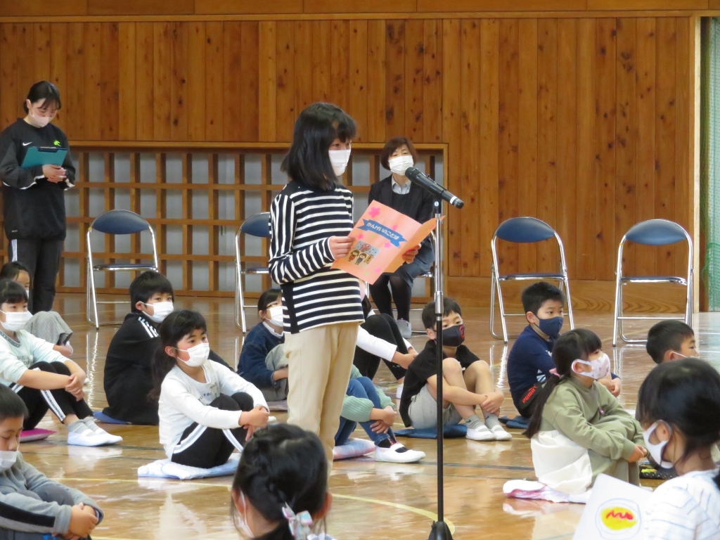 1年生に、プレゼントやメッセージが届けられたり、一緒にゲームを楽しんだりして、心温まる会になりました。