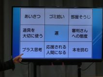 そして、そのためにすることを8つ決めました。「ごみを拾う」「本を読む」「道具を大切に使う」「審判さんへの態度」などです。 この中の1つに「あいさつ」があります。大谷選手は、あいさつをすることで、周りの人を笑顔にすることができると考えたのです。