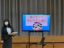 校長先生は、朝、みなさんとあいさつをしていますが、毎日、みなさんから笑顔と元気をもらっています。あいさつには、周りの人を笑顔にして元気にする力があるのです。 これからも、みなさんには、周りの人が笑顔になるあいさつをしてほしいと思っています。