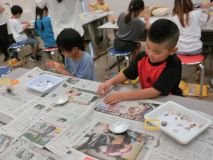 海の博物館では、海岸でいろいろな種類の貝を集め、小さなオブジェづくりに挑戦しました。海の博物館の先生に教えていただき、シャーレに入れた砂の上に、貝やシーグラスをならべていきます。みんな、夢中になって作成に取り組み、すてきなオブジェが完成しました。