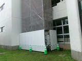 10月18日(土)に、図書に設置するエアコンの足場を設置しました。来校時にはお気をつけください。