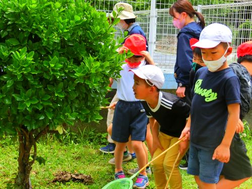 「赤ちゃんの虫を見つけたら、観察したあとで元いた場所にはなしてあげましょう。」