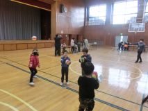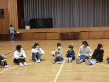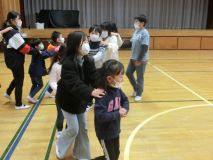 次に、5年生と交流しました。園児のみなさんは、「かもつれっしゃ」や「ボールまわし」「だるまさんがころんだ~節分バージョン~」などのゲームに楽しく参加しました。