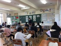 体験授業では、豊浜小学校のみなさんと一緒に英語の授業を受けました。はじめは不安げな様子でしたが、すぐに緊張がほぐれ、豊浜小の友達と交流しながら、楽しく中学校の授業を体験することができました。