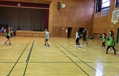 2月14日、「ミニバス部6年生のお別れ試合」を行いました。初めは、「6年生」対「4、5年生」で対戦し、その後「6年生」対「先生方」で対戦しました。結果は、24対10で、6年生チームが勝利しましたが、お互いにすがすがしい汗を流していました。6年生のミニバス部の皆さん、今までありがとうございました。