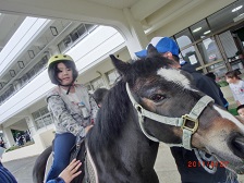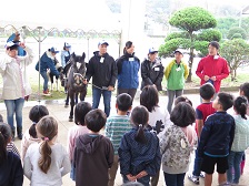 10月29日、上野小学校にポニーが来てくれました。1~6年生全員、ポニーにエサ(にんじん)をあげたり、体をなでたり、中には頬を摺り寄せたりする子がいました。1,2年生は、更に、ポニーに乗馬する体験をし、動物(命)の温かさを感じることができました。