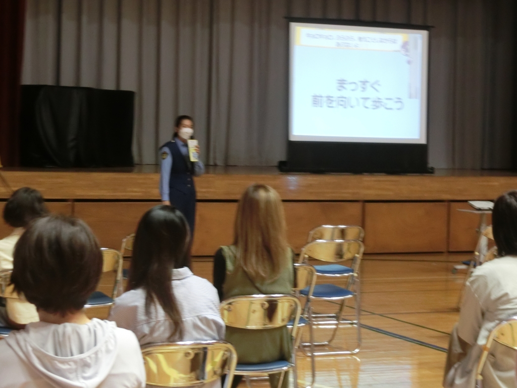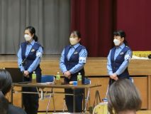 家庭教育学級は、千葉県警察よくし隊レディ「あおぼーし」のみなさんを講師に迎え、「子供を守る」をテーマに、防犯についての講演を聴きました。不審者から子供を守るために大切なことや、危険な場所の見分け方など、学校や家庭で役立つ安全対策を教えていただきました。