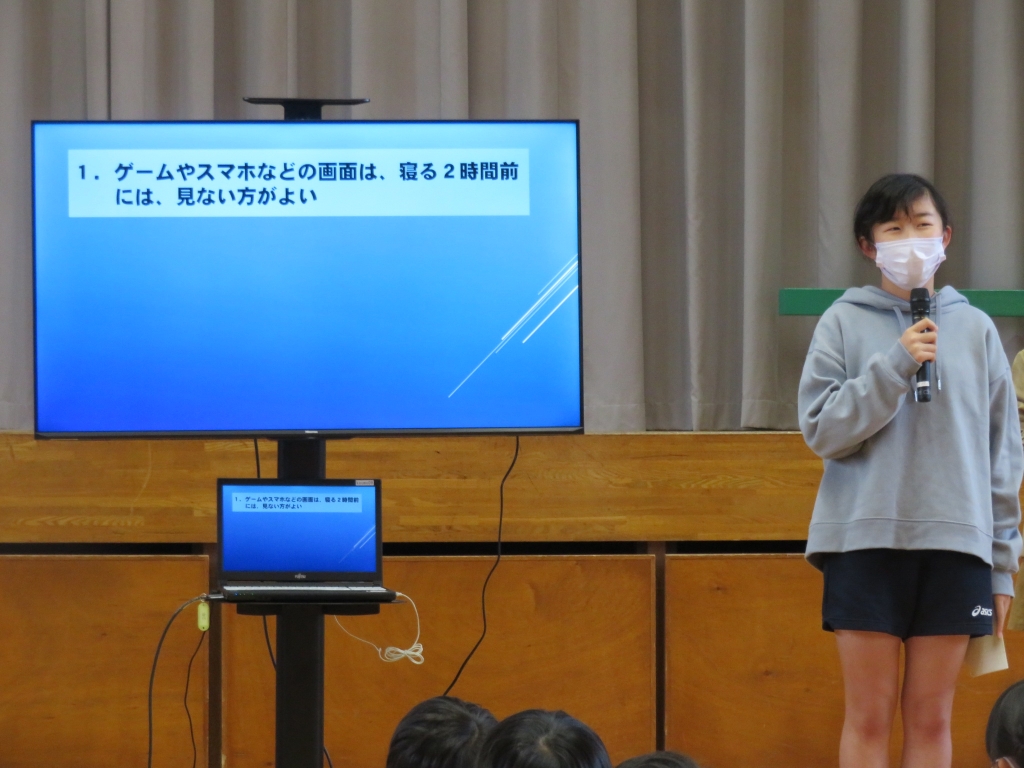 保健委員会からは、先月に引き続きよい睡眠について発表がありました。