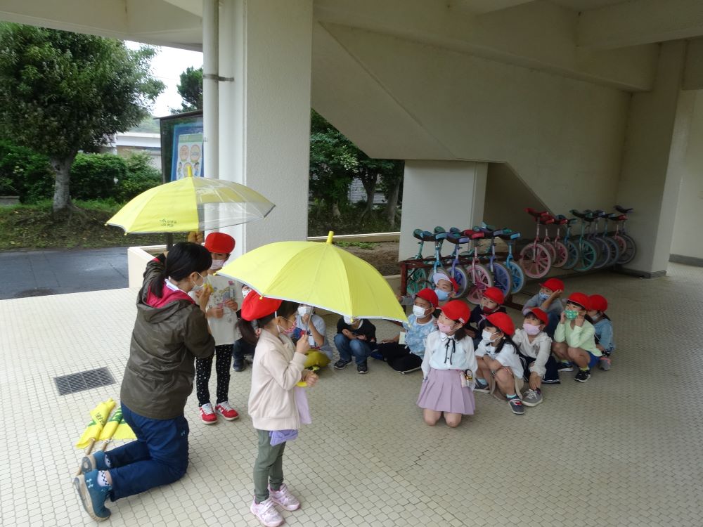 5月19日、1年生が雨の日の安全な登下校について学習しました。
