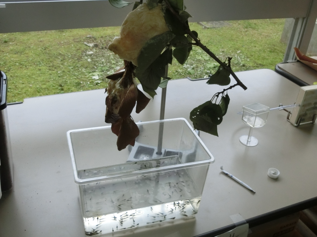 5月24日、登校すると、モリアオガエルのオタマジャクシがたくさん生まれていました。