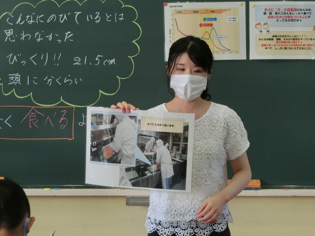 子供たちの成長に欠かせない「食」について、栄養教諭の梶先生に指導していただきました。
