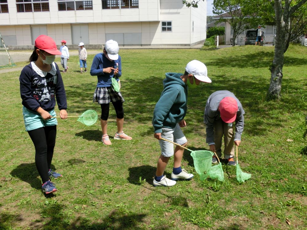天気のいい日は、網を手に虫探しに熱中しています。