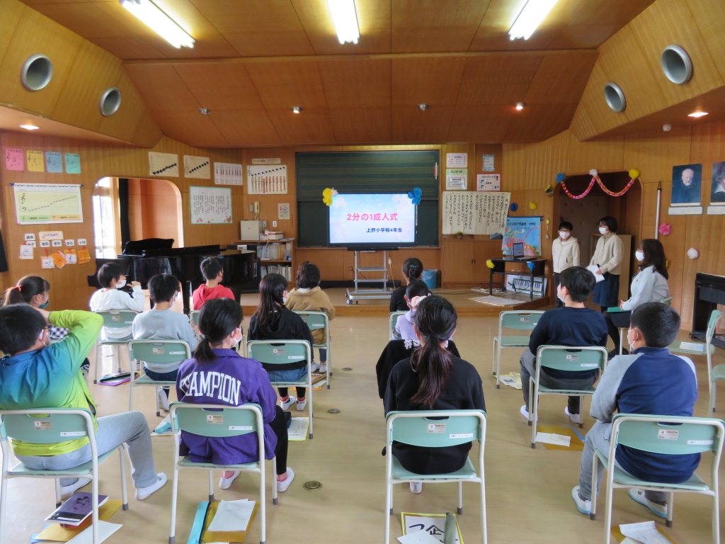 3月4日、4年生がお世話になった先生方を招待して「二分の一成人式」を行いました。