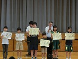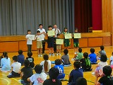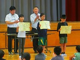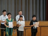理科の科学工夫作品展、読書感想文コンクール、書写、JRCトレセンの修了証の表彰を行いました。