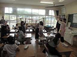 9月20日(木)に、3年生で食育の指導を、原栄養教諭と一緒に行いました。給食の残菜を調べたり、人の腸の長さを実際に体験したりして、食べることの大切さを学ぶことが出来ました。