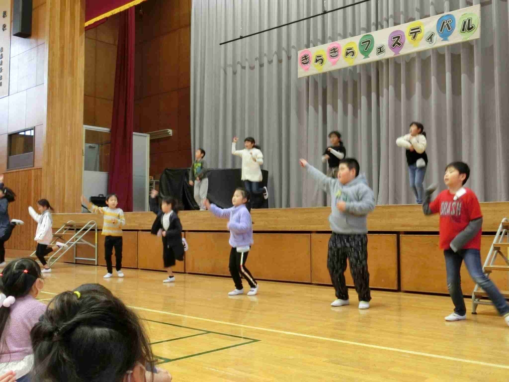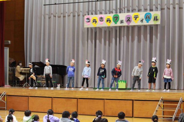 11月29日、きらきらフェスティバルを開催し、子供達が日頃の学習の成果を発表しました。この日に向け、一生懸命準備や練習に励んできた子供達。音読劇やプレゼンテーション、歌やダンスなど、学年ごとに工夫を凝らした発表に大きな拍手が送られました。大勢の前で堂々と発表できたことは、大きな自信につながりました。