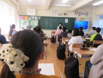 12月16日、勝浦中学校体験入学・交流会が行われ、市内5小学校の6年生が中学校の授業を体験したり、ゲームやダンスで交流したりしました。
