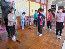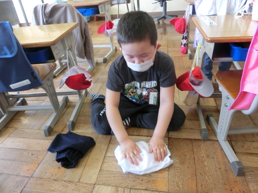 授業中に、発表したり、脱いだ服を自分でたたんだり、お掃除をしたりと、いろいろなことに全力で取り組んでいます。