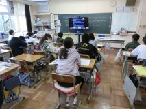 来週予定している小惑星探査機「はやぶさ2」の見学に先立ち、JAXAオンライン授業が行われました。3~6年生がそれぞれの教室から参加し、JAXA職員の方のお話を聞きました。「はやぶさ2」の活動の様子などを学ぶことができました。