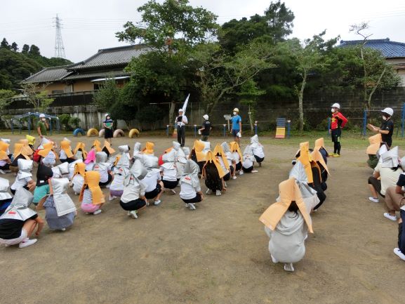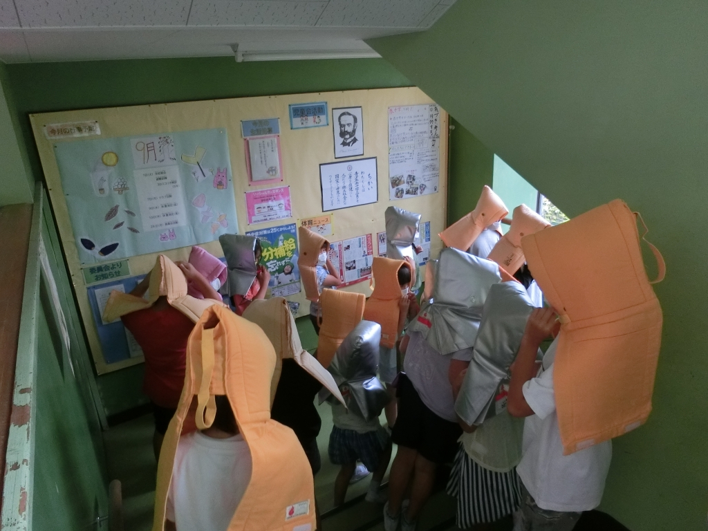 放送をよく聞き、口を結んで落ち着いて避難行動をとることができ