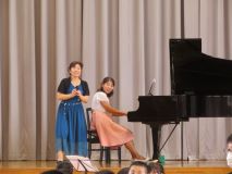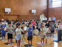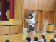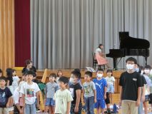第2部では、全校合奏や、歌「アメージンググレイス」、ピアノ連弾による「ねこばす」などが披露され、あっという間の1時間でした。最後に、児童代表が「ハーモニーのみなさんの演奏に感動しました。音楽物語は、お話の情景が目に浮かんできて、平和の大切さを改めて考えました。今日は、久しぶりに親子で音楽を楽しむことができて、とてもうれしかったです。」と、お礼の言葉を述べました。