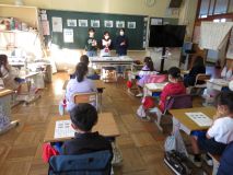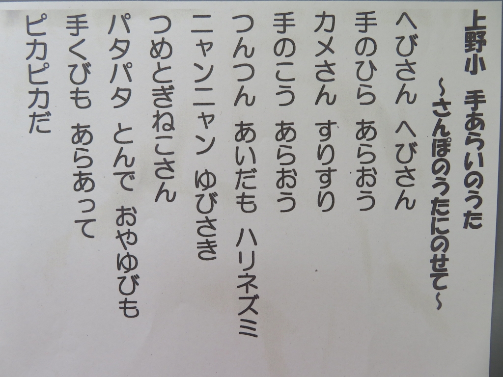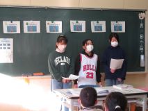1月20日、朝自習の時間に健康委員会のメンバーが教室を訪れ、「てあらいうた」を紹介し、「しっかりと手を洗い、コロナ感染症やインフルエンザにかからないようにしましょう」と呼びかけました。