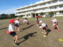 タグラグビーチーム「勝浦ボニートス」で子供たちの指導をされている方をゲストティーチャーにお迎えし、3年生がタグラグビーの授業を行いました。