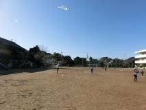 1月20日、1年生が上野保育所みどり組のみなさんと一緒にたこあげを行いました。子供たちは、楽しそうに自分で作ったたこを見せ合ったり、全力で走りながらたこあげ競争をしたりして、季節の昔遊びを楽しみました。
