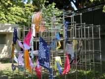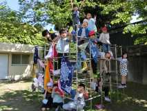 3年生が図工の時間に、遊具にいろいろな布をつないで造形遊びを楽しみました。