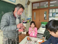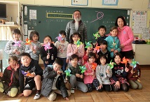 1月17日(金)、1年生は、松野地区の福山さんを講師に、「ウグイス笛」と「風車」を作りました。ウグイス笛では、最初はなかなか音が出せませんでしたが、福山さんが調整すると本物のウグイスのような鳴き声を出すことが出来ました。また、どの子の風車も、勢いよく回っていました。福山さんに感謝です