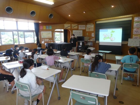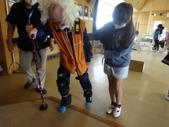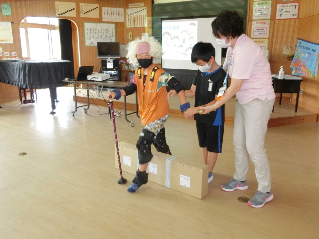 9月16日、勝浦市役所高齢者支援課のみなさんをお招きし、4年生が高齢者疑似体験を行いました。勝浦市は、千葉県で4番目に高齢者の割合が高いそうです。初めに、高齢になると、体や心がどのように変化していくのか学びました。次に、器具を装着し、高齢者がどのように感じているのかを体験しました。体が思うように動かず動きがゆっくりになること、目が見えづらくなること、耳が聞こえづらくなることなど、体験して初めて分かったことがたくさんありました。また、介助の仕方も教えていただきました。高齢者の立場になって接することの大切さを学びました。