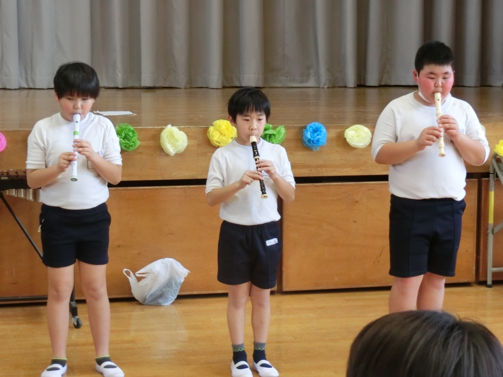 はじめに、お父さんやお母さんが見守る中、将来の夢や、できるようになったことを発表しました。次に、親子でドッジボールを楽しみました。後半は、この日に向けて一生懸命練習してきた合奏や合唱を披露。そして、最後に、お父さんやお母さんへの手紙を渡しました。
