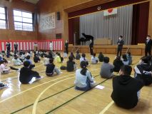 校長先生から、「進級おめでとうございます。今日から新しい学年のスタートです。『大きな声であいさつや返事をする』『時間を守る』『自分のことは自分でする』ことを守り、みんなで明るく楽しい上野小学校をつくっていきましょう。」とお話がありました。
