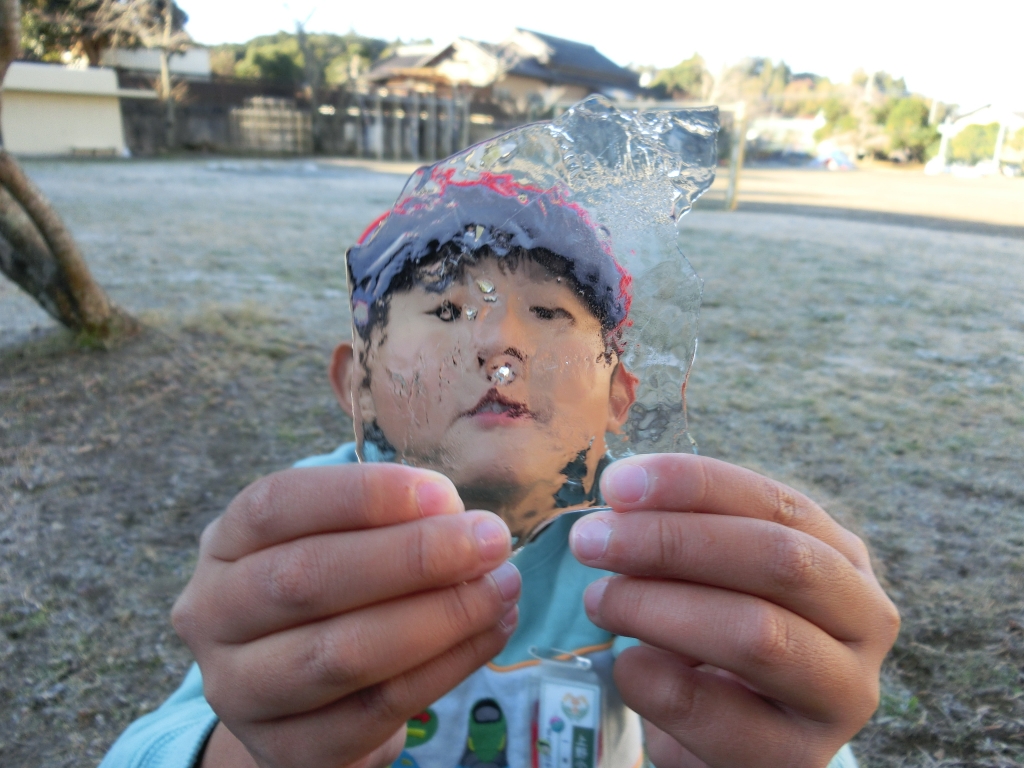 朝の冷え込みが、日に日に増してきました。今朝はグラウンが霜で真っ白になりました。1時間目、元気いっぱい駆け出したのは1年生です。生活科の「冬と遊ぼう」の学習で、霜や氷を見つけたり、おしくらまんじゅうをしたりして遊びました。