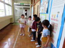 2年生は、1年生によくわかるようにと、案内の掲示を作ったり、伝えたいことをメモしたりしながら、上手に案内することができました。