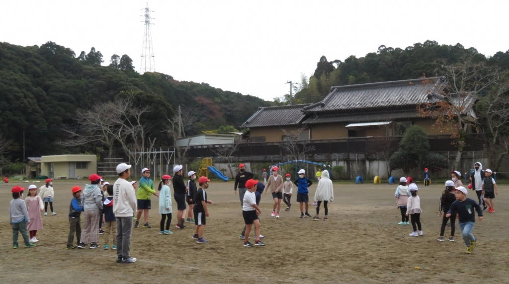 マラソンが終了し、久しぶりの業間休み。校庭では低学年と高学年の子が一緒にドッジボールをして遊ぶ姿が見られました。キャッチしたボールを、笑顔で1年生に手渡す高学年の子供たちの優しさに心が温かくなりました。