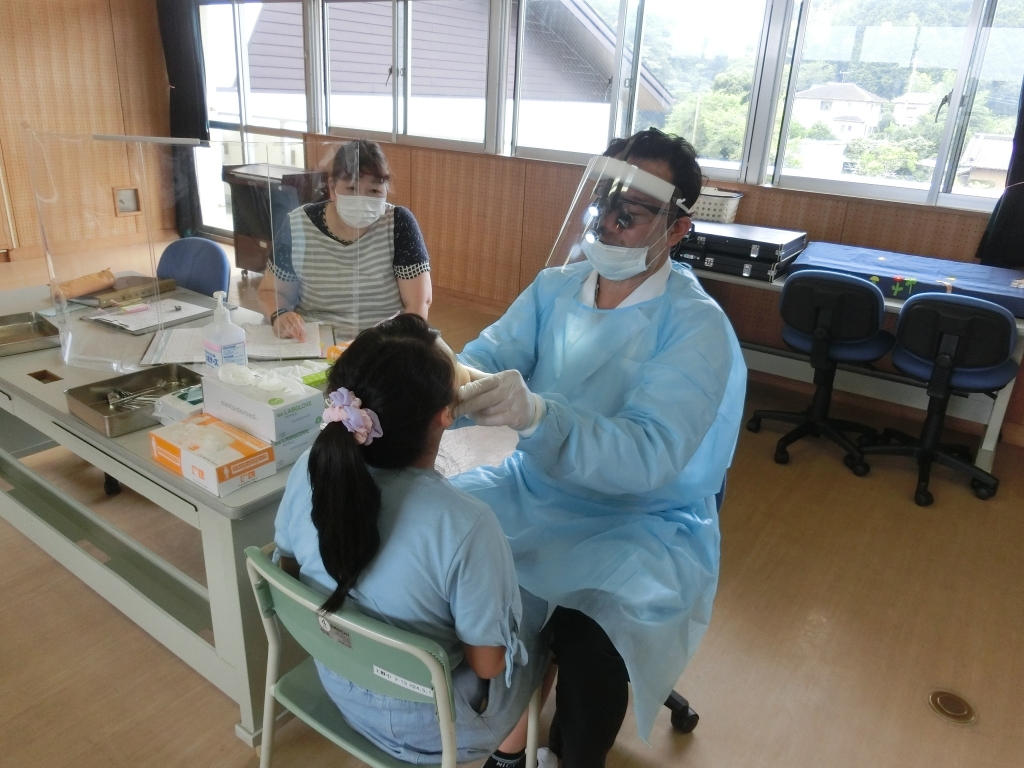 学校医の髙梨先生に、むし歯の有無や歯並びの異常、口腔内の病気などがないか診ていただきました。子ども達は、検診前に時間をかけ念入りに歯みがきをし、少し緊張しながら検診を受けていました。