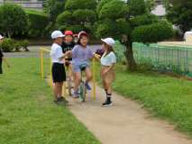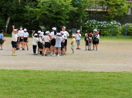 1年生から6年生まで、みんなで外に出て一緒に遊びます。