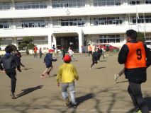 鬼役(警察官役)は、運営委員のメンバーと先生方です。青空の下、みんなで思いっきり走りまわりました。