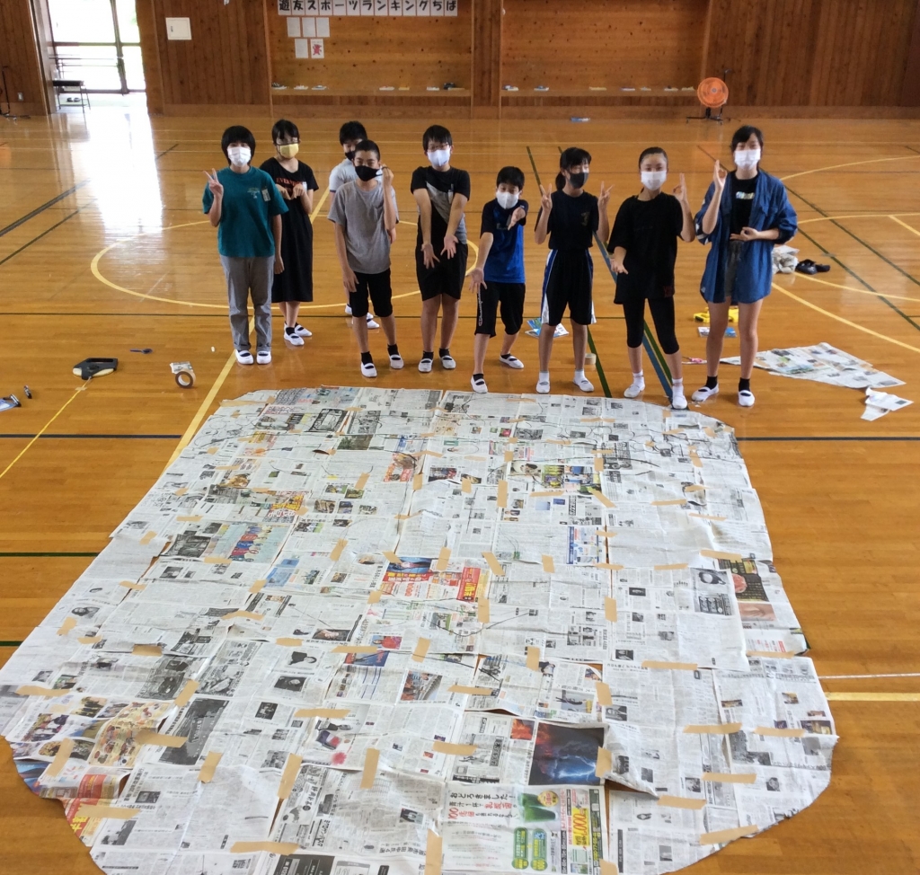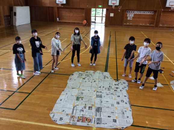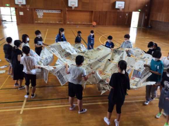 7月30日(木) 6年生が社会の学習で奈良東大寺の大仏の大きさを再現しました。実際の大仏の頭と手の大きさに合わせ、新聞紙をつなぎ合わせ形を作ると、その大きさに驚きの声が上がりました。力を合わせて新聞紙を張り合わせました。これが 大仏の手の大きさ。