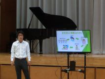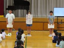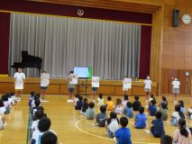 最後に、健康委員会のメンバーが、夏休みを元気に過ごすための5つのやくそくを発表し、適切な運動や規則正しい生活の大切さを確認しました。